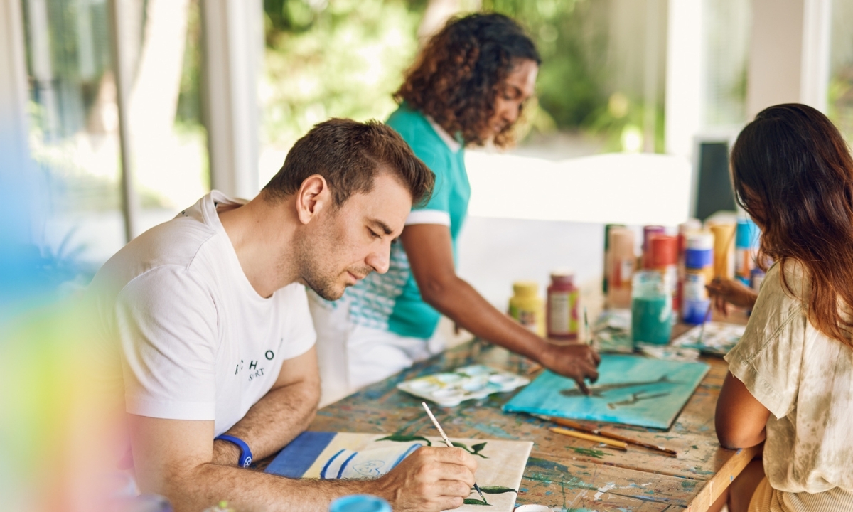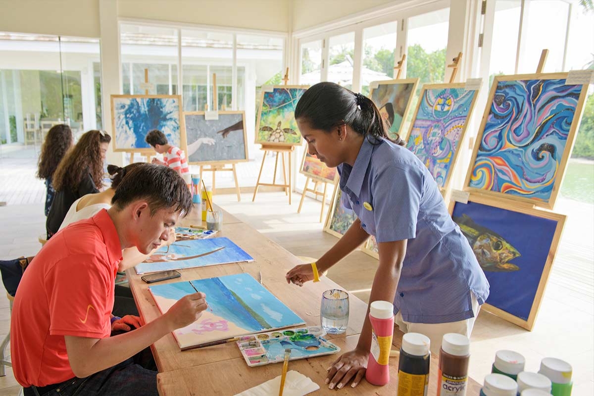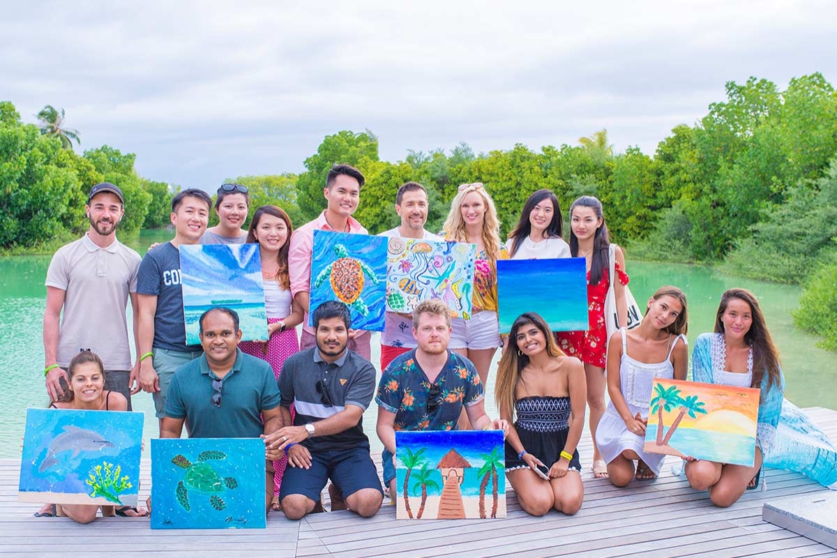 Apart from our signature events, we also organize and host regular exhibitions and exciting art performances by local artists at the in-house KULA Art Studio, the epicenter of Kandima’s art scene. Set on the edge of a natural lake, this is one of the most striking yet peaceful locations on the island, giving both guests and artists an inspirational “space of Zen” that they need to create their masterpiece!